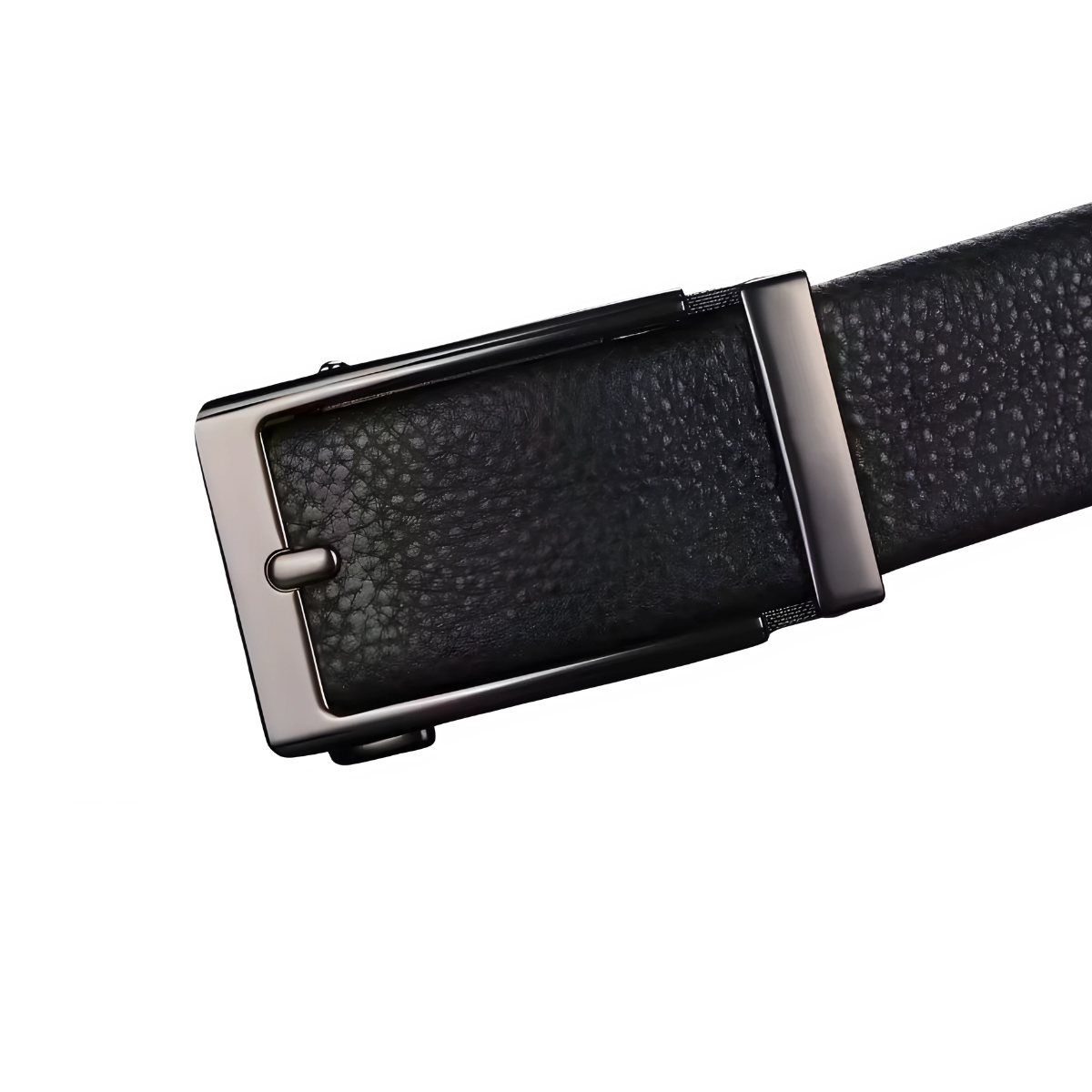 The sleek metal autolock buckle adds a refined touch, while the durable leather construction guarantees long-lasting performance. Designed to transition effortlessly from boardroom meetings to casual outings, this belt is the ultimate accessory for the modern gentleman.